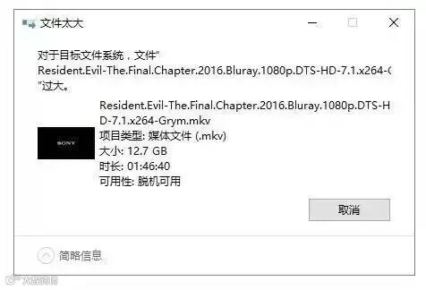 好吧,我的32GB优盘可能“吃不下”体积这么大的电影,只能借来移动硬盘……