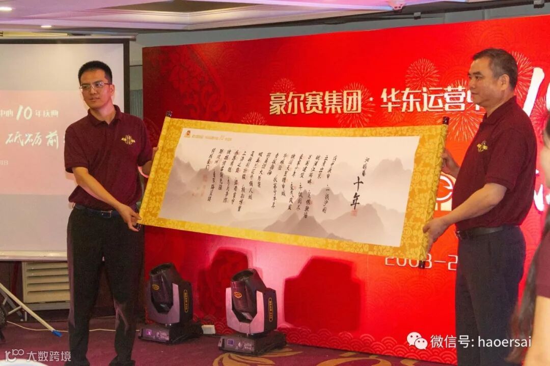 随后戴宝林董事长为华东运营中心及刘墩煌总经理送上了最诚挚的祝福及最殷切的期盼,感恩各个阶段为华东运营中心做出过贡献的所有豪尔赛人,感恩依然一路相伴、倾情付出的家人们,细数曾为华东运营中心征战过的强将雄兵们,寄语这伟大的时代、蓬勃的行业蓝图、优质的豪尔赛平台及携手拼搏的豪尔赛家人们!