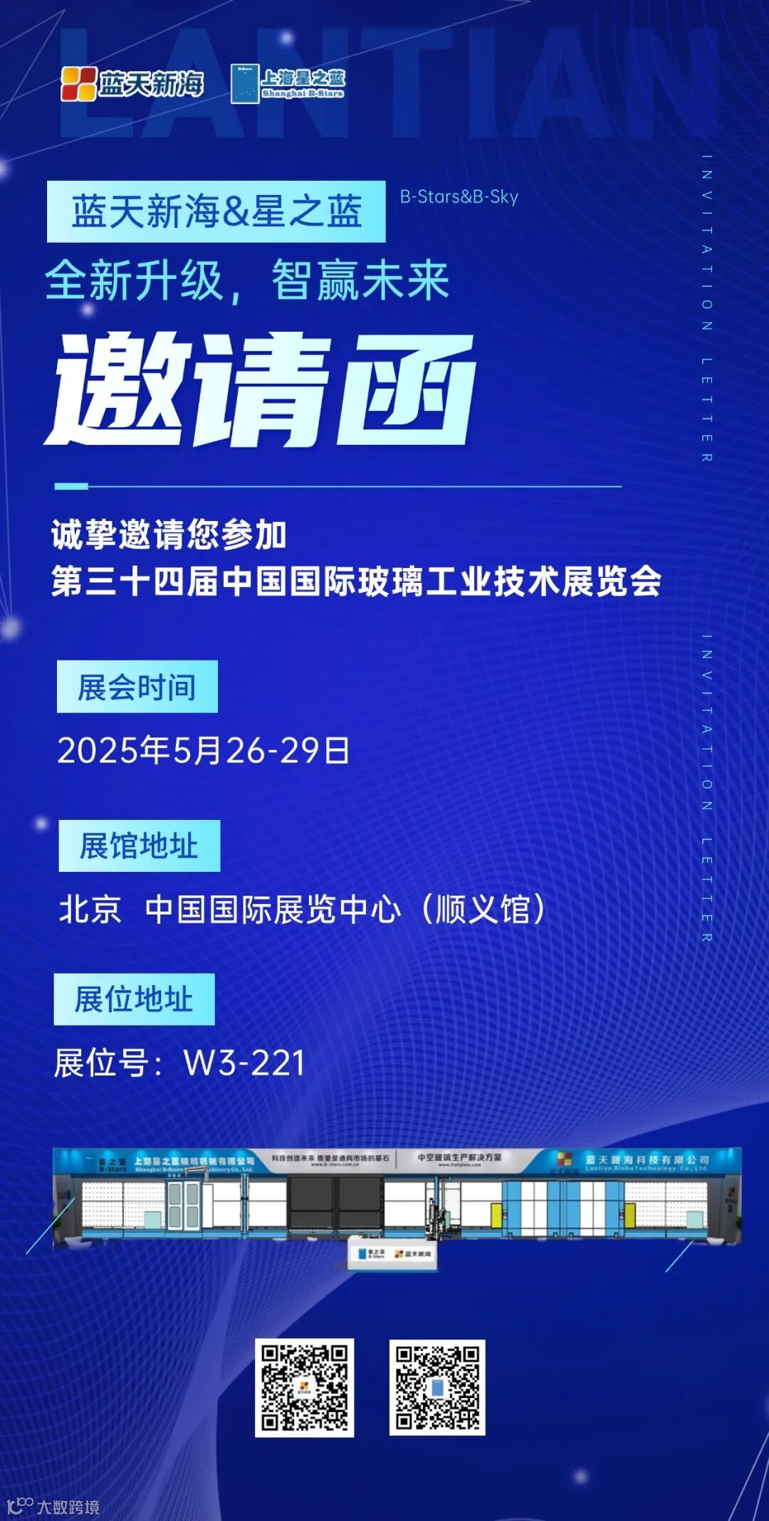 蓝天新海诚邀您于 2025 年 5 月26日相聚北京,莅临第三十四届中国国际玻璃工业技术展览会,共鉴蓝天新海科技有限公司全新升级的中空玻璃打胶机设备。