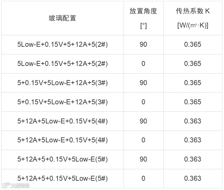 真空玻璃、复合真空玻璃,放置角度、气体间隔层厚度对K值几乎无影响。