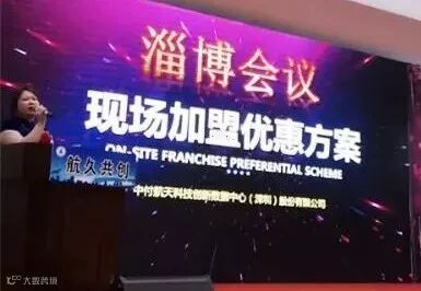 ▲图为 主持人宣讲现场加盟优惠方案。
