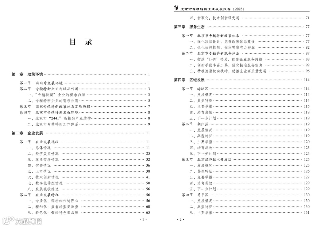 《北京市专精特新企业发展报告(2023)》目录