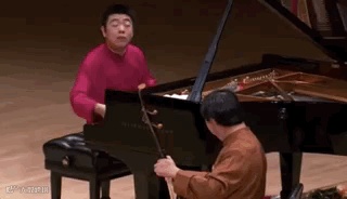 把儿子栽培成钢琴巨星后,他在音乐会上,和儿子合奏演出。