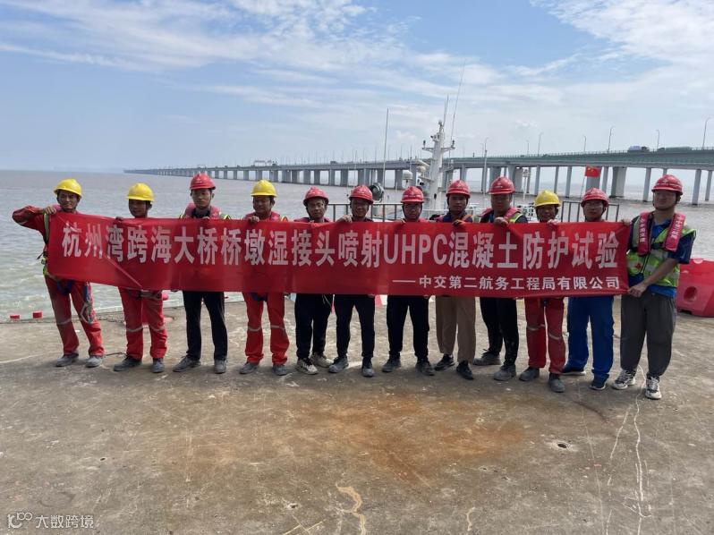 近日,由中交二航局与中国海洋大学联合开发的喷射UHPC施工技术在杭州湾跨海大桥混凝土性能维护与提升(2023-2024年度)项目桥墩湿接头防护施工中成功应用,本次应用由技术中心与建筑科技共同实施。喷射UHPC技术用于桥墩湿接头防护在世界上尚属首例,本项目的成功实施为海洋结构物加固与防护技术的发展提供了新质生产力。