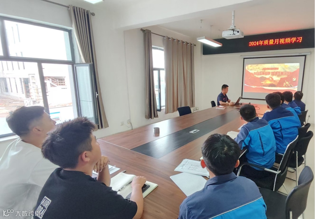呼市绿色食品产业园、中央厨房项目组织开展2024年“质量月”活动启动仪式,仪式传达了关于印发市政公司2024年“质量月”活动方案的通知、宣读了“质量月”活动倡议书,并自行组织了强国质量视频学习。