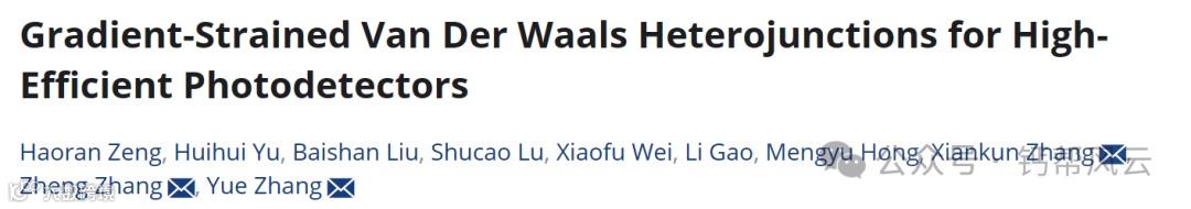 最大化光电转换效率是二维材料光电探测器实际应用的关键挑战。然而,由于二维材料缺乏稳定、精确的电子结构控制方法,光生载流子的驱动力不足,严重阻碍了分离和传输的效率。本文设计并构建了一种梯度调制、稳定、精确的二维材料应变施加策略,显著提高了ZnO/WSe2/石墨烯异质结光电探测器的探测效率。与典型光电探测器中全组分材料的整体应变不同,WSe2的双轴拉伸应变可以通过控制ZnO纳米棒的高度来精确调制,而该应变几乎不受ZnO的影响。当应变调制从1.3%增加到4.0%时,异质结的外量子效率(EQE)从11.4%增加到35.3%,增加了三倍。随着应变的增加,EQE可以达到更高的水平。此外,还阐明了应变增强转换效率的机制,这是应变诱导的WSe2激子收敛和应变增加的ZnO/WSe2界面势垒协同作用的结果,从而提高了载流子界面分离效率。