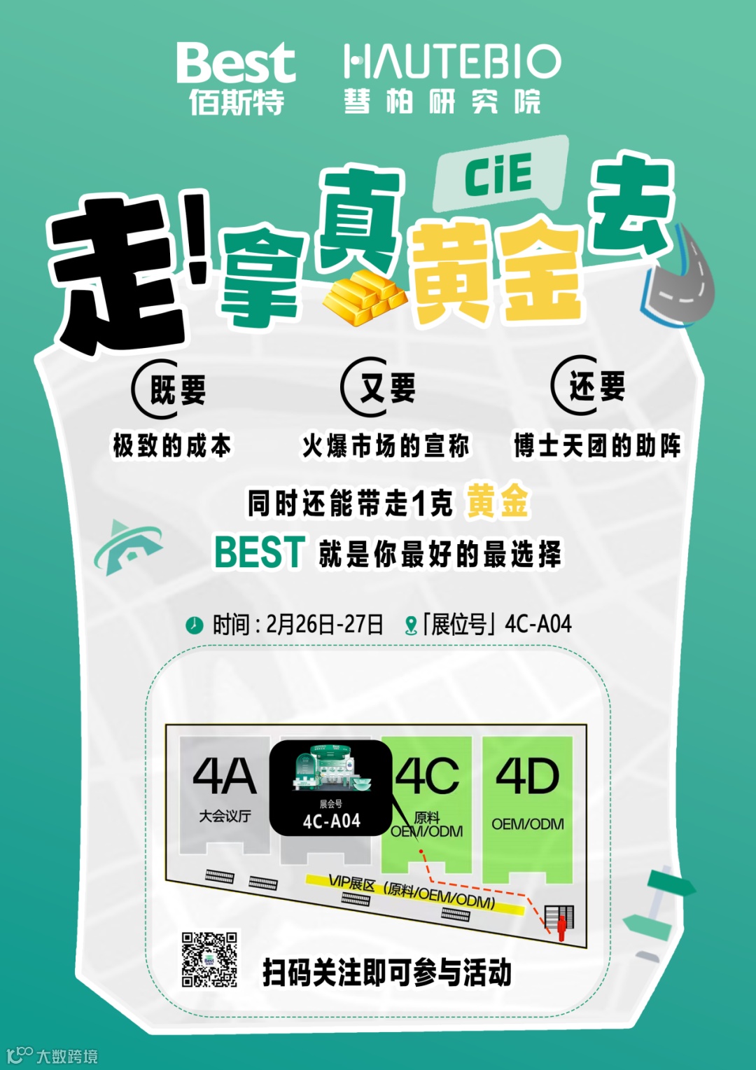 2月26-28日CIE杭州展会4C-A04,「一站式功效原料解决方案服务商」佰斯特X「线粒体能量护肤引领者」彗柏研究院,将在业内开展基于差异化靶点通路模型的原料组合及协同增效解决方案的定制开发服务,提供从行业咨询、品类分析、方案输出、原料定制、模型测试、安全性评价、科学传播、专家背书、专利及论文共创等一条龙全方位服务。