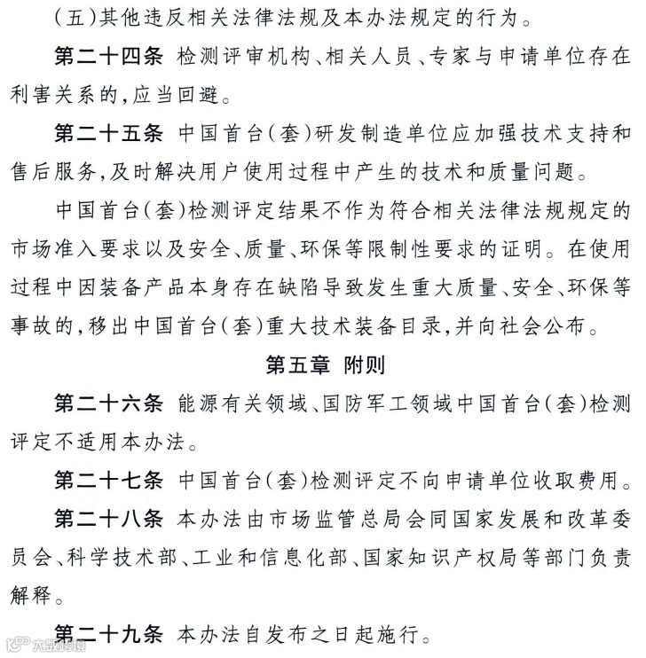 为促进我国重大技术装备质量提升,支撑重大技术装备攻关工程,推动制造业高端化、智能化、绿色化发展,加快推进新型工业化,市场监管总局、国家发展改革委、科技部、工业和信息化部、国家知识产权局5部门近日联合印发《中国首台(套)重大技术装备检测评定管理办法(试行)》(以下简称《办法》)。