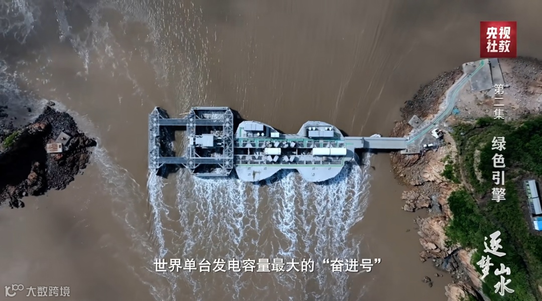 2025年2月,自然资源部等六部门联合出台《关于推动海洋能规模化利用的指导意见》,提出力争到2030年海洋能装机规模达40万千瓦,持续向“深蓝”要“绿电”。在浙江舟山一个遍布暗礁的峡湾里,中国首台兆瓦级,世界单台发电容量最大的“奋进号”潮流能发电机组,正将滚滚潮流转化为清洁电能输入国家电网。俯瞰发电站,在最像一把小提琴的部分,潮水涌过,就像弹奏琴弦发出的旋律,这是一首人类携手海洋共同演奏的绿色能源协奏曲。