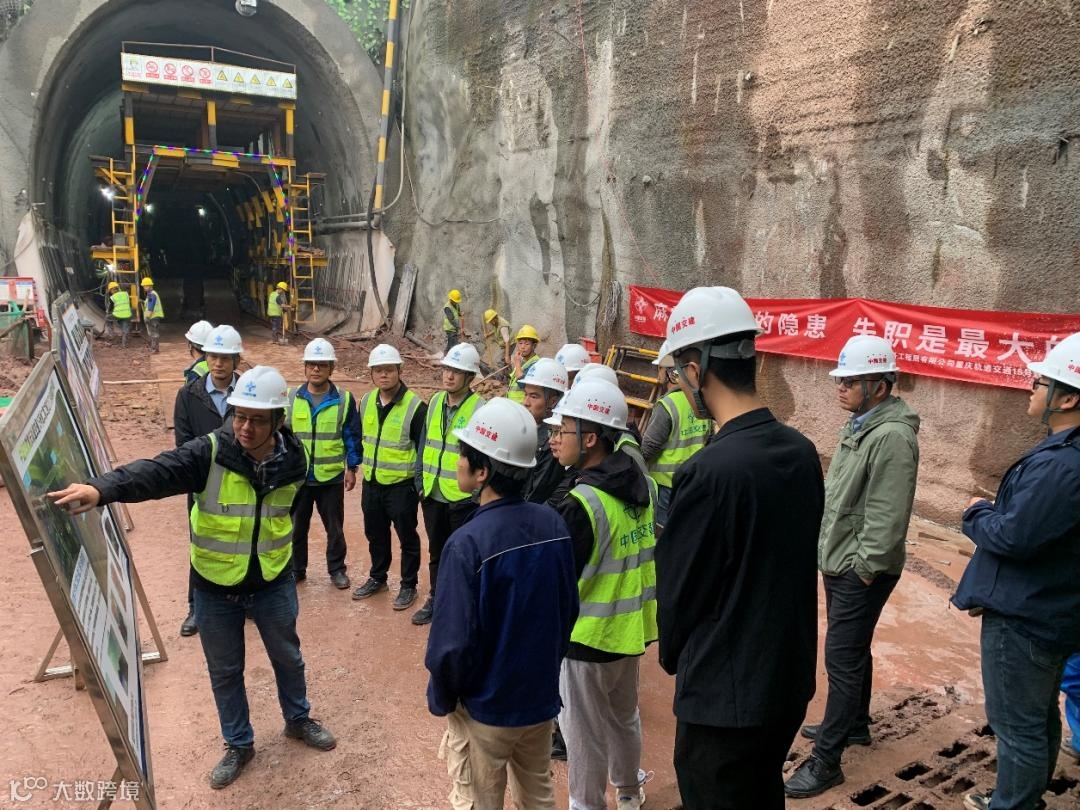 参会人员观摩了张家湾基地出入线暗挖隧道开挖支护施工情况,中交二航局TJ15标项目总工何运对隧道地址情况、开挖方式、技术质量控制要点进行详细介绍。