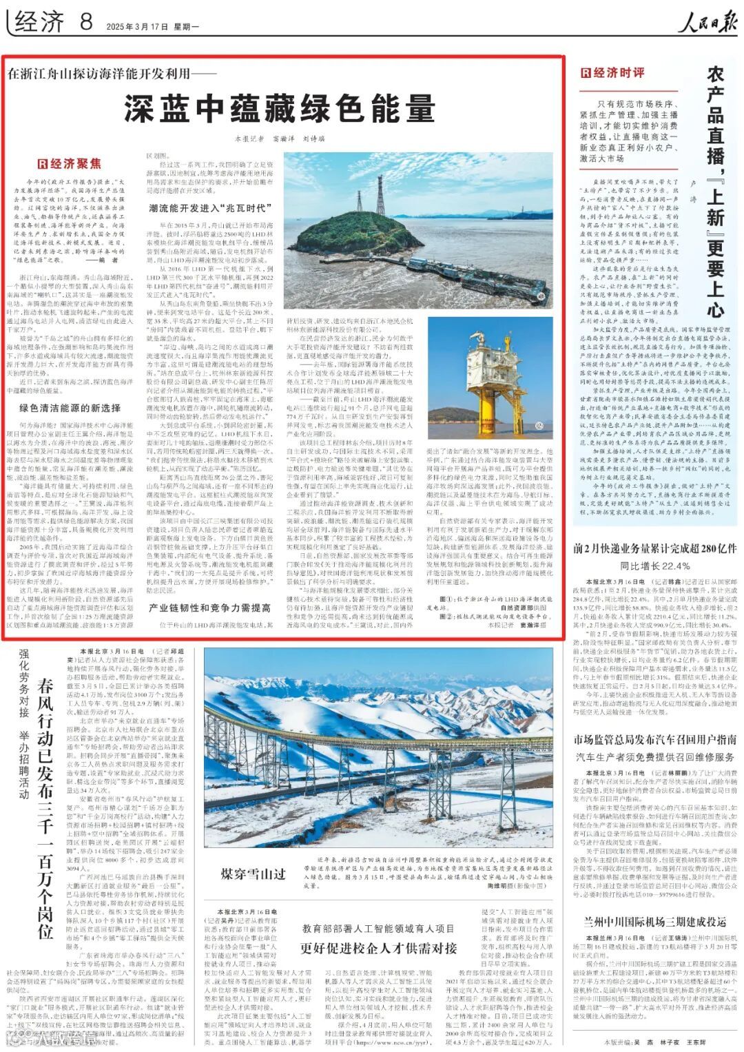 近日,记者来到东海之滨,探访蓝色海洋中蕴藏的绿色能量。