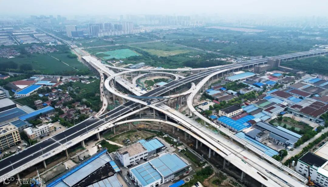 繁忙的G328国道和溱湖大道交叉口上空,已具雏形的互通立交,犹如一条挺立盘旋的“巨蟒”,气势恢宏,张力十足,仿佛时刻准备呼啸着奔向四方。