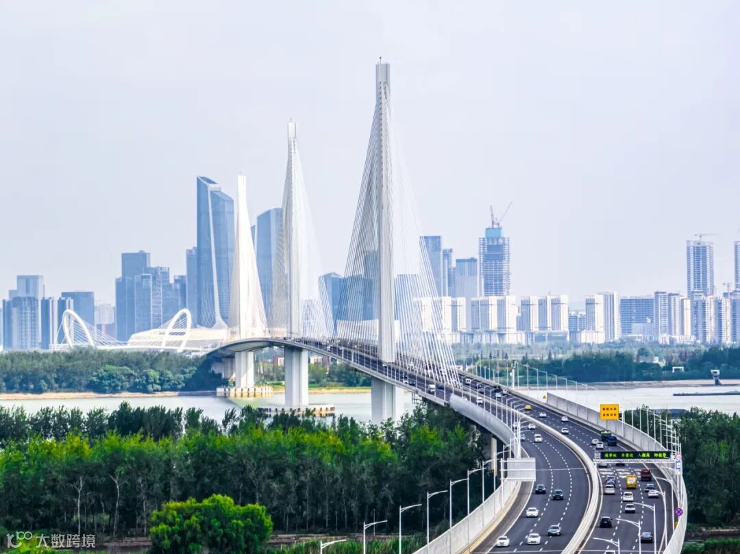 江心洲长江大桥是世界上首座采用粗骨料活性粉末混凝土桥面板结构的组合梁斜拉桥,也是跨径最大的钢混组合索塔斜拉桥。大桥全长4.4公里,主桥长1796米,三塔两跨,两个主跨均为600米,设计为双向6车道、行车时速100公里,于2017年5月8日开工建设,2020年12月24日通车运营。