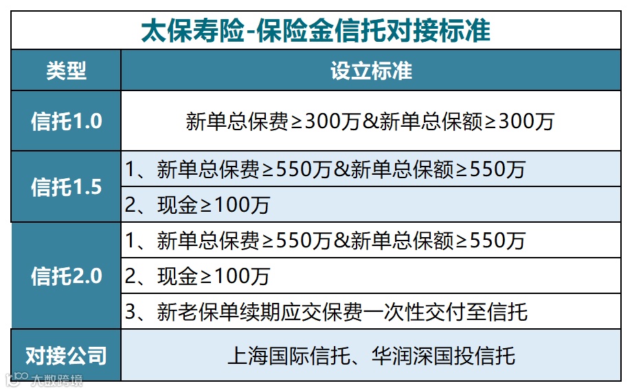 保险金信托:总保费≥300万起,可对接上海国际信托/华润深国投信托。