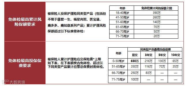 5、免体检保费:50岁以下最高总保费650万免体检、51-65岁最高350万免体检、66-70岁最高250万免体检。