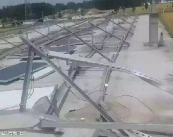 1、光伏支架设计跨度偏大,同时支架偷工减料,使用的型材强度不足,甚至使用劣质钢材 ;
