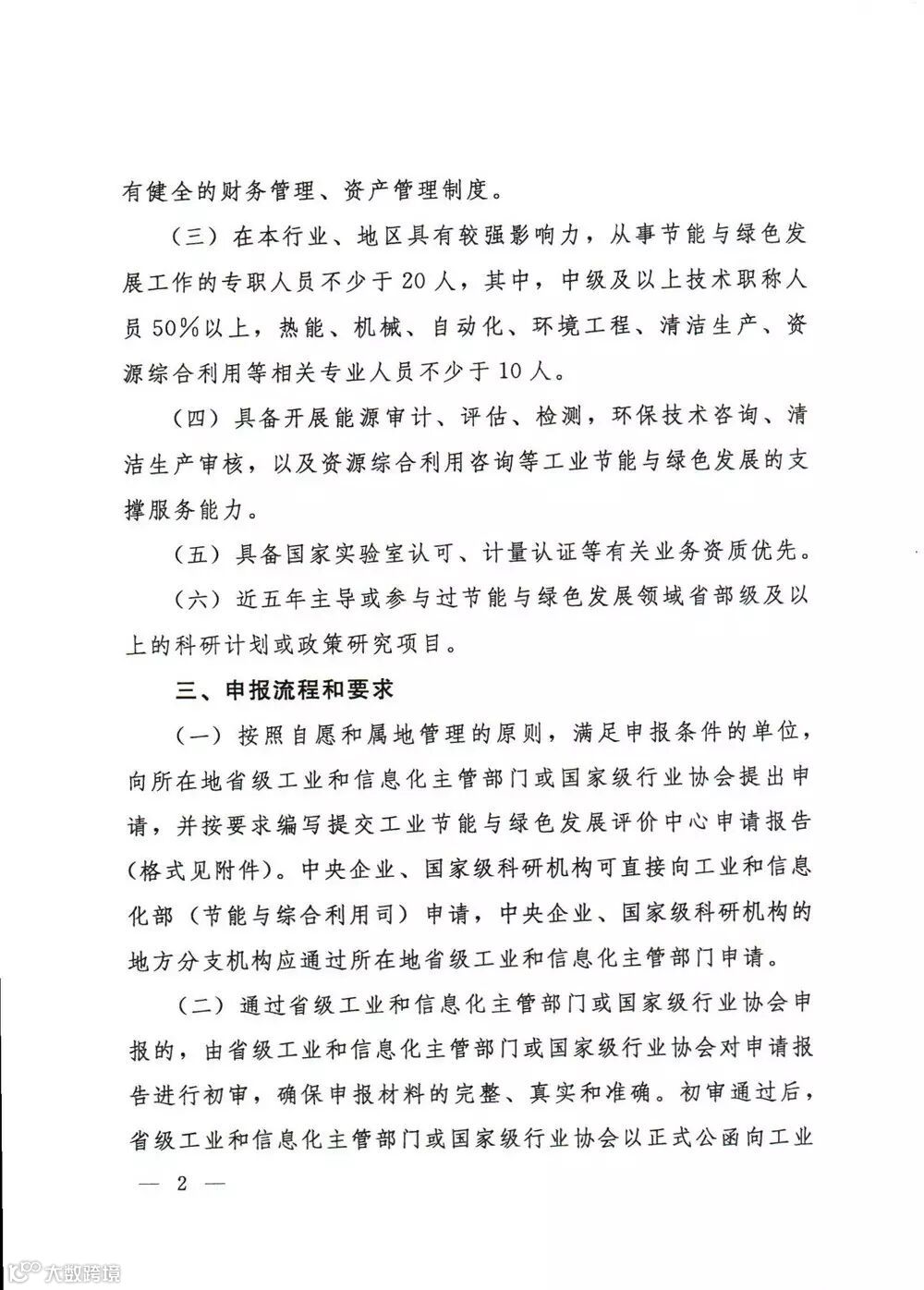 附件:《工业和信息化部办公厅关于组织申报第二批工业节能与绿色发展评价中心的通知》
