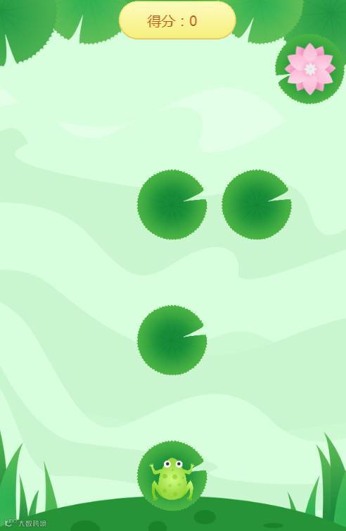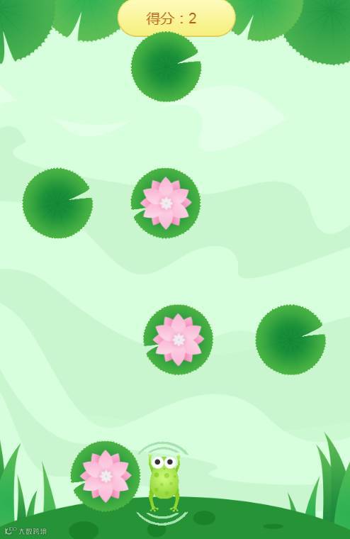 如果小青蛙没有跳到荷叶或荷花上,游戏就结束了。