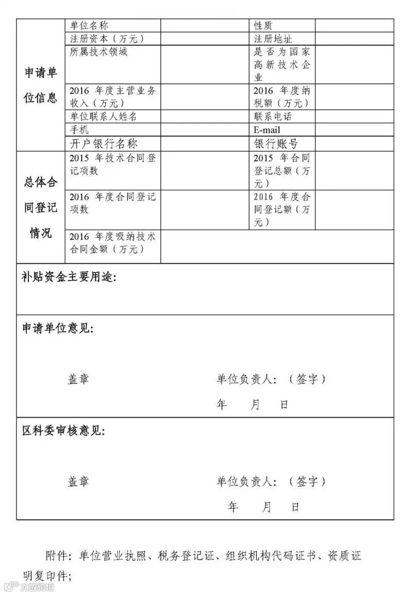 请符合条件1、2、3之一的单位准备《朝阳区技术市场促进专项资金申请表》(附件1)及单位资质证明等附件材料,符合条件4的技术转移服务机构准备《朝阳区技术转移服务机构资助申请表》(附件2)及相关资质、业绩、能力等方面的附件材料。上述材料用A4纸打印或复印,按顺序左侧装订一式两份,所有复印件要求加盖单位公章。所有材料签字盖章后2017年3月10日17:00前报送到区科委综合科,电子版材料发送至邮箱。在区科委技术合同登记处登记的单位可直接报送至生产力促进中心技术合同登记处。