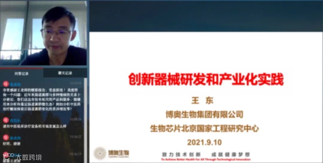 2021年9月10日,“星光璀璨、筑梦北京”科技人才交流系列活动第三十三期在北领online线上平台举办,活动邀请到博奥生物集团健康技术研究院院长王东,作“创新器械研发和产业化实践”的主题分享,共有来自企业、高校、科研院所的40名科技人才参加。