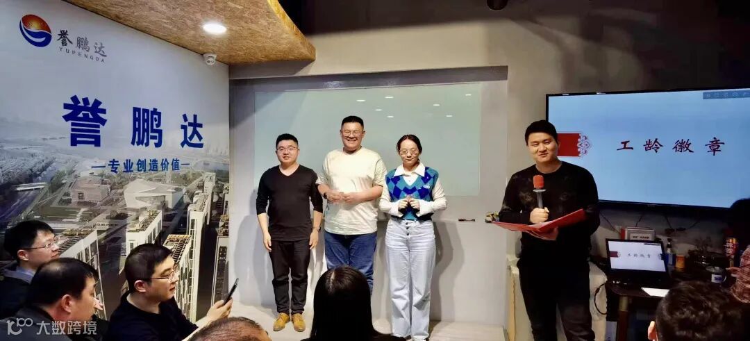 会上,为誉鹏达入职1年、3年、五年的伙伴们颁发了工龄徽章。