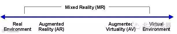 AR在上世纪80年代由Paul Milgram提出,晚于虚拟现实(Virtual Reality,以下简称VR)的提出(60年代)。增强现实是指在我们观察的环境——即现实环境——上叠加虚拟对象的图像,与之相对的概念是增强虚拟(Augmented Virtuality)。