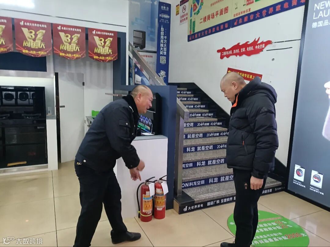 市场经营管理组织开展市场安全及基础设施检查,覆盖市场辖区内的经营用房、大型商超等重点场所,主要检查电气线路、消防设施、疏散通道等方面,确保各项安全设施设备完好有效,并发放春节期间五金城市场安全工作通知,及时要求经营户做好安全自查和防范措施,春节放假离店要断水断电、关好门窗,禁止销售、禁燃、禁放烟花爆竹。