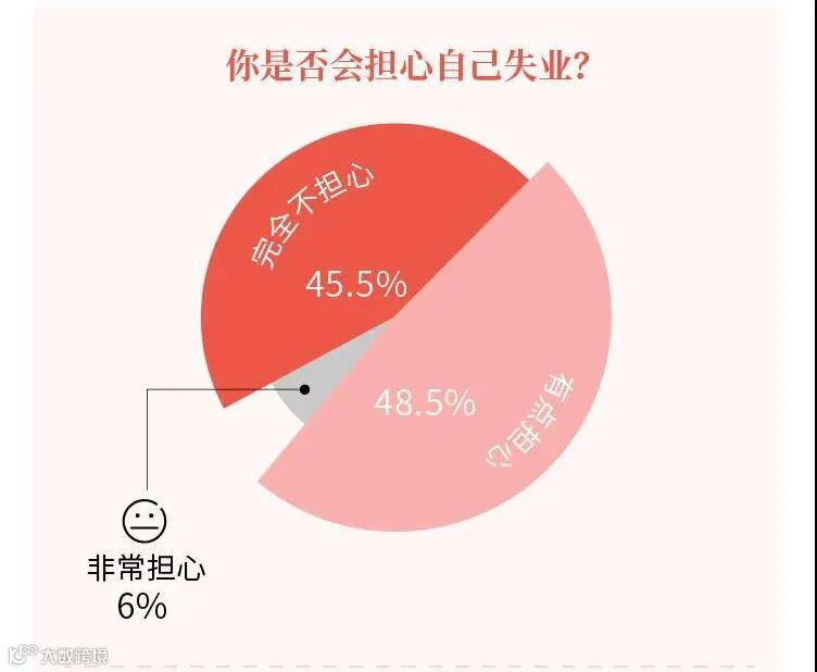问题“是否担心自己会失业?”的结果也印证了这一点儿:45.5%的受访新中产完全不担心自己会失业,只有6%的受访新中产表示非常担心。