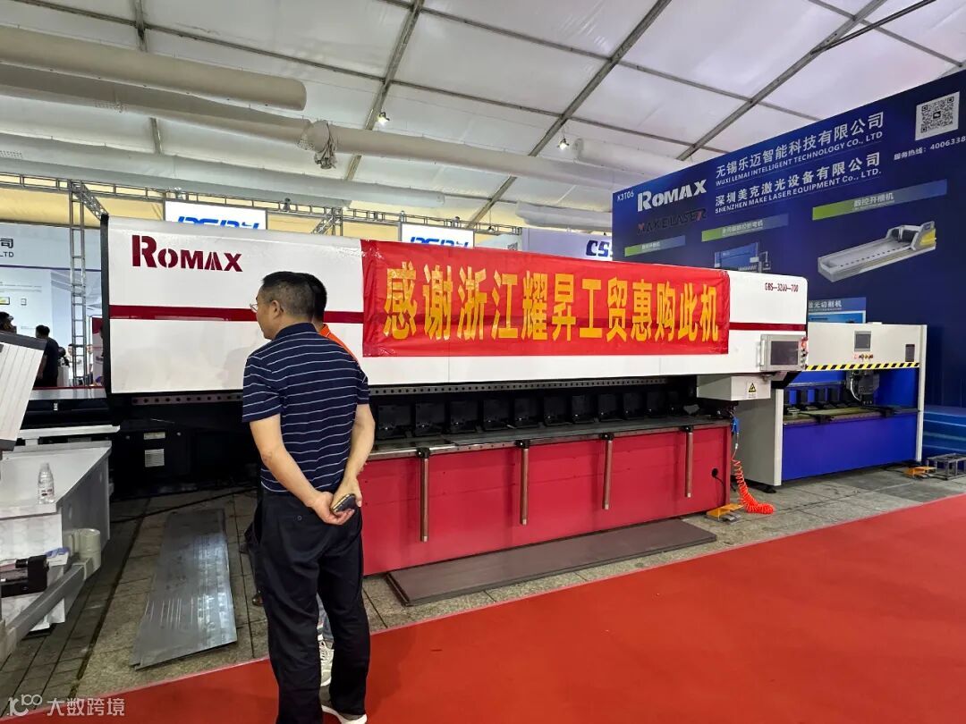 此次展会上,无锡乐迈智能科技有限公司带来了数套门业专用数控钣金设备。“永康门企基本都离不开这类激光切割机,传统的加工方式需要更多人工,而且不能保证切口光滑平整,采用专业激光切割设备,搭配自动开卷机、校平机以及柔性收料架,无需人工上料,可以大幅度提高切割效率和切口平整度。”乐迈智能的销售人员祝伟介绍。据悉,此次展会主推的三款不同型号激光切割机均已售罄,不少意向客户等着排队下单,产品广受门企青睐。