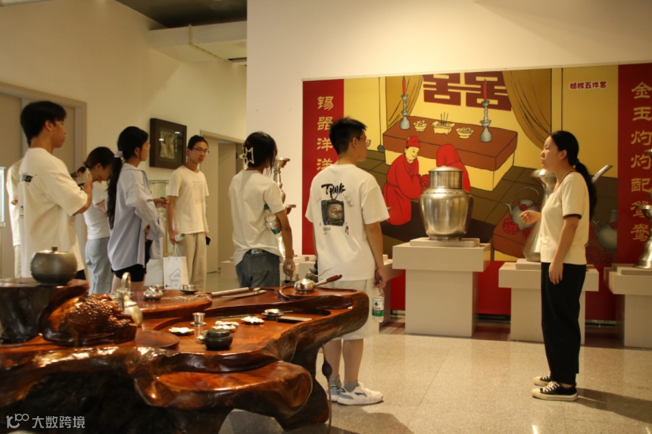 在探寻永康五金发展脉络环节,实践团队前往永康国际会展中心,参观了世界五金精品馆、铜雕馆与锡雕馆。在讲解员的生动讲解下,学子们清晰了解到永康五金从无到有、从有到优的发展历程:从早年五金工匠走南闯北,将永康五金产品带入百姓生活与婚嫁礼俗;到五金产业不断壮大,产品享誉国内外,成为行业迭代升级的关键;再到如今五金艺术产品的出现,既提升了人们生活品质,又传递了五金美学、发扬了永康五金精神。这让学子们对永康五金的丰富多彩和发展的波澜壮阔感叹不已,也对其未来发展充满期待。