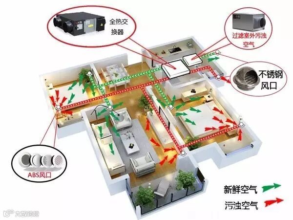 由此可见,室内的空气质量直接影响着我们的生活质量,而通风换气是提高室内空气质量的最直接和最有效的方法,也成了改善居住环境和提高生活质量的必要手段。在欧洲一些发达国家已经把住宅通风规定为强制执行的条款。新风系统就是在这种大环境下应运而生的。