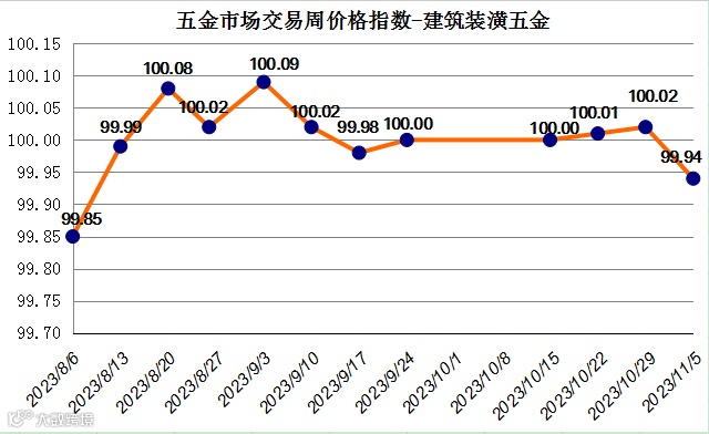 五金市场交易周价格指数评析(2023年10月30日至11月5日) 中国科技五金城