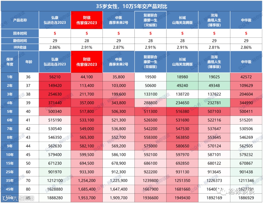 5年交费下,第5年及以后现价位居第一梯队,尤其是第5年的现价尤其突出!