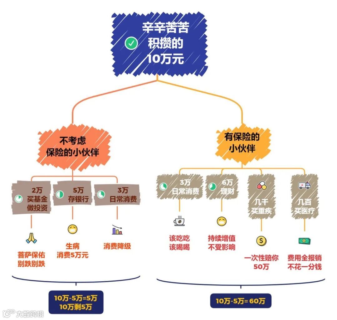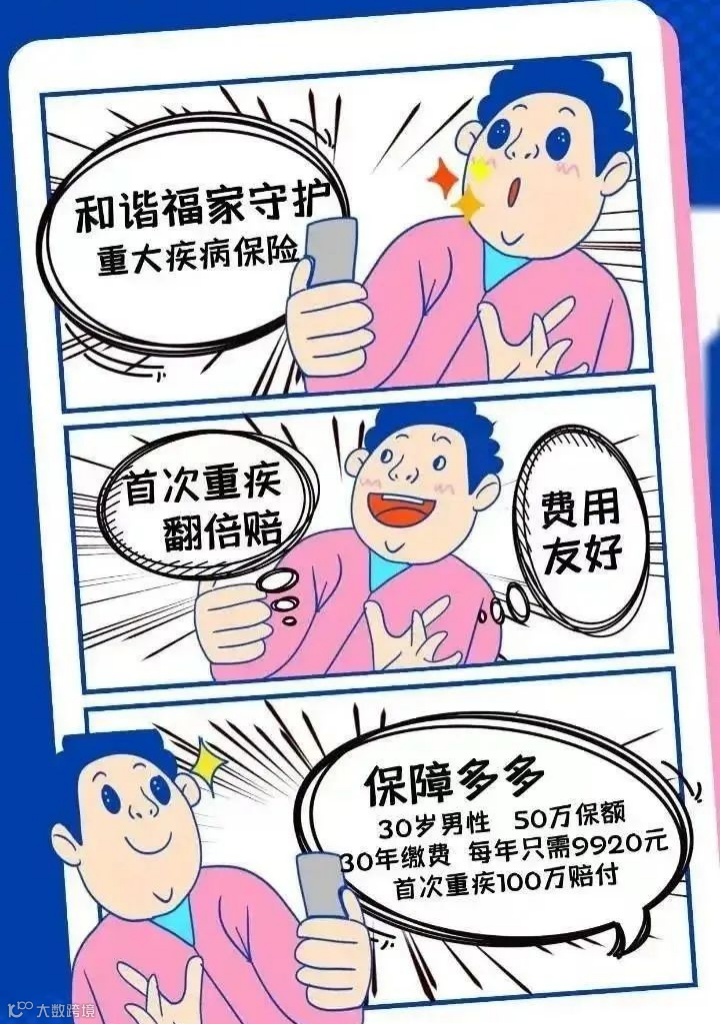 咱就说这个图,是不是很清楚地表达了什么叫“保险”、什么叫“守护财富”、什么叫“踏实安心”!谁会拒绝用几千块钱去拥有一份几十万保额的重疾险呢?!