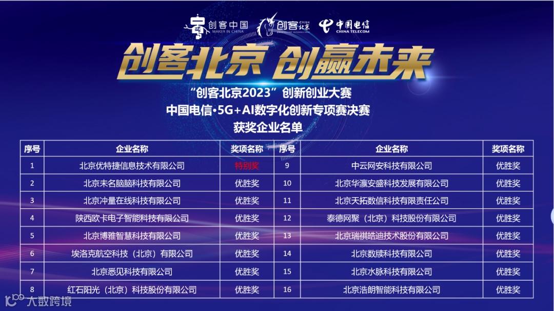 决赛以线下路演的形式开展,入围项目同台竞技,充分展示市场前景、核心竞争力、创新能力、团队能力等综合实力,评审团从多维度对路演项目进行逐项评审、现场打分,经过激烈角逐,北京优特捷信息技术有限公司荣获大赛特别奖、北京未名脑脑科技有限公司等15个项目荣获优胜奖。
