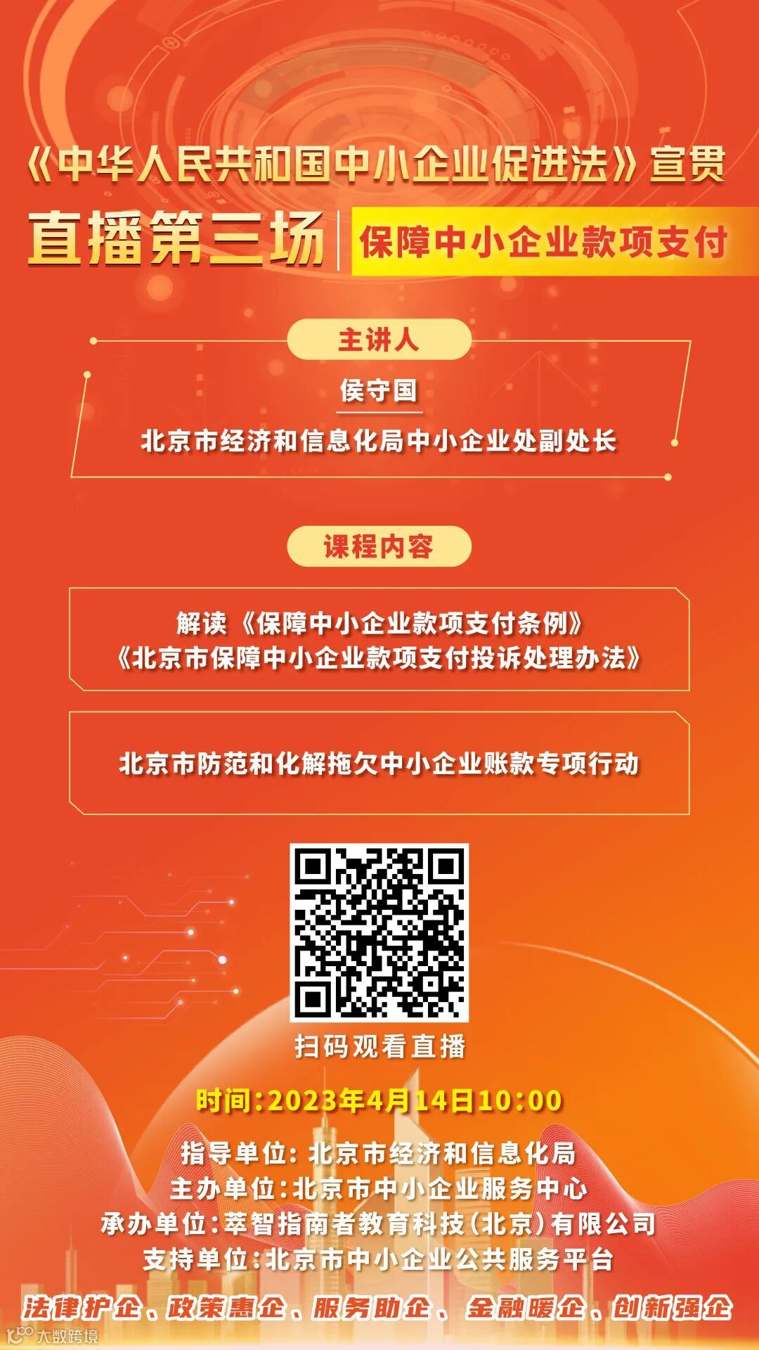 《中华人民共和国中小企业促进法》宣贯直播第三场:保障中小企业款项支付 北京中小企业服务平台