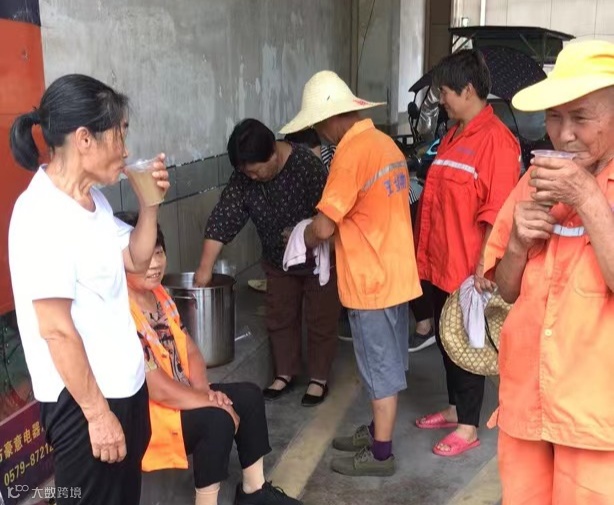 "师傅,辛苦了,喝杯绿豆汤吧!"7月20日下午三点左右,正是一天当中最热时刻。在五金城垃圾中转站附近,三三两两的环卫工人忙完手里的活后,纷纷聚集过来,接过绿豆汤,开怀畅饮起来。“天气太热了,环卫工人们工作很辛苦。所以集团食堂熬了绿豆汤,为辛勤劳动的环卫工人们送上一份清凉。”一位正在分发绿豆汤的工作人员说。