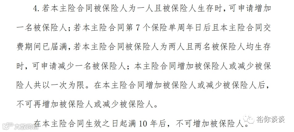 合同生效10年后,就不可以再增加被保险人了。