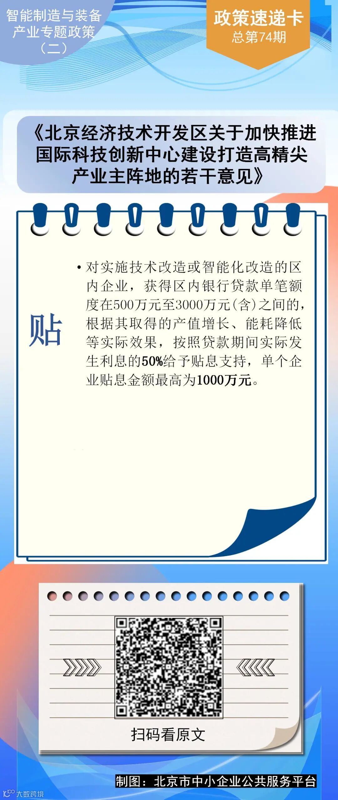 政策速递卡 | 智能制造与装备产业专题政策(第二期)来了 北京中小企业服务平台
