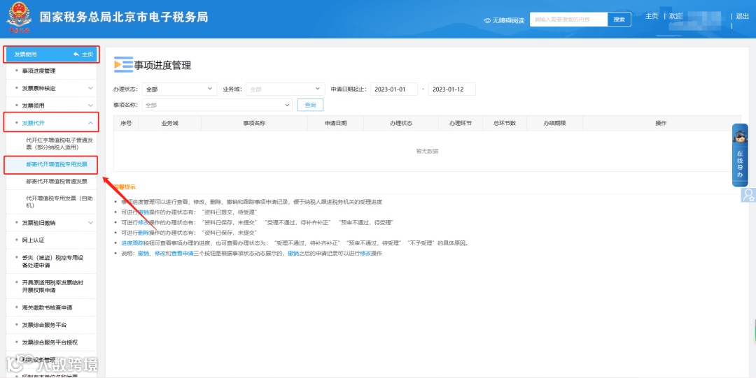 二、发票使用—发票代开—邮寄代开增值税专用发票。