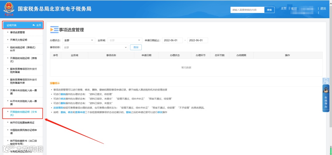 二、证明开具—开具税收完税证明(文书式),〔注:个人所得税纳税人就税款所属期为2019年1月1日(含)以后缴(退)税情况申请开具证明的,不再开具税收完税证明(文书式),调整为“纳税记录”〕。