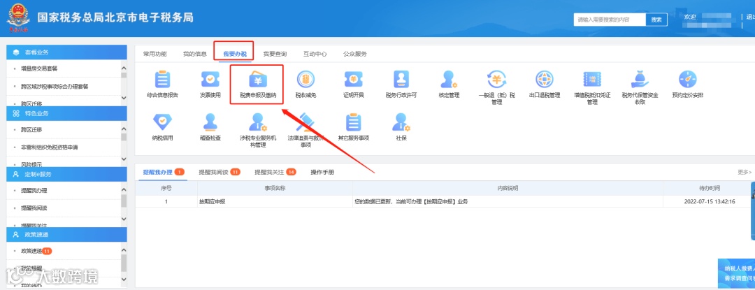 方法二:请您在主页点击:【我要办税】—【税费申报及缴纳】—【全渠道申报查询】(该功能可实现电子税务局申报及办税服务厅申报的两类申报数据,圴可在电子税务局查看、下载及打印申报表),此模块目前仅支持打印增值税(一般人、小规模)申报表和企业所得税预缴申报表(2018年2季度以后属期的)。