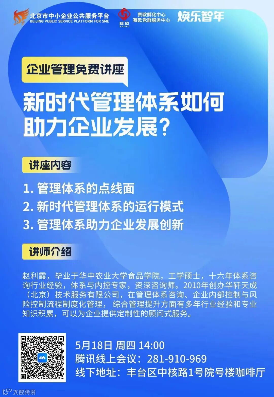 京企大讲堂 | 新时代管理体系如何助力企业发展免费讲座 北京中小企业服务平台