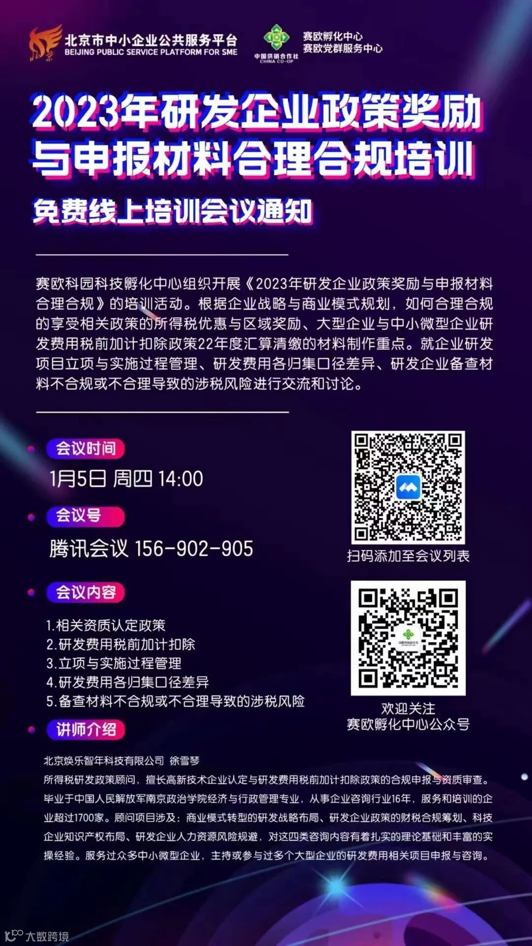 京企大讲堂 | 2023年研发企业政策奖励与申报材料合理合规培训 北京中小企业服务平台
