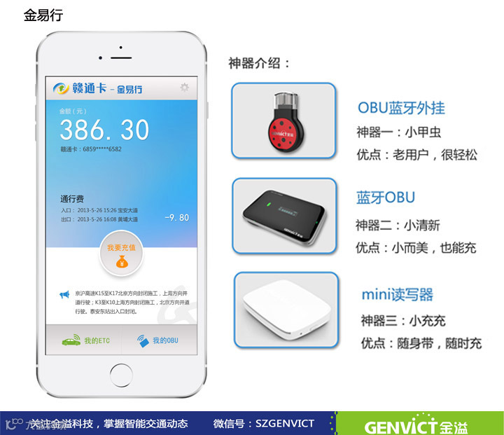 深圳市金溢科技股份有限公司携手支付宝重磅推出ETC联云充值及车主服务云平台——金易行,现面向广大赣通卡用户招募金易行“天使用户”,免费送出100个ETC充值神器,让您抢先体验ETC充值新玩法!