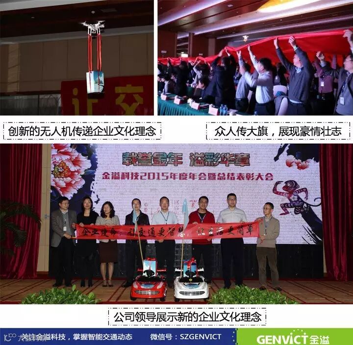 董事长罗瑞发在年会上表示:未来,金溢科技将以企业文化和员工为基础,围绕“上车、落地、联云、在手、进城、展翅、参军、出海”的发展战略,秉承“核心技术+核心行业客户群体”的双聚焦理念,依托“IT+交通”的双基因优势,采用“资本+产业”双轮驱动的发展模式,通过搭建精英团队,实行责任分担等方式,实现高速公路智慧交通、城市智慧交通、公安交通管理、物流追溯、前沿交通等多业务全面发展,从而构建一个将人、车、路、场、环境等交通要素360°无缝感知、高效、便捷、绿色、安全的城市交通物联网,达成“晋十创百破千”工程目标。