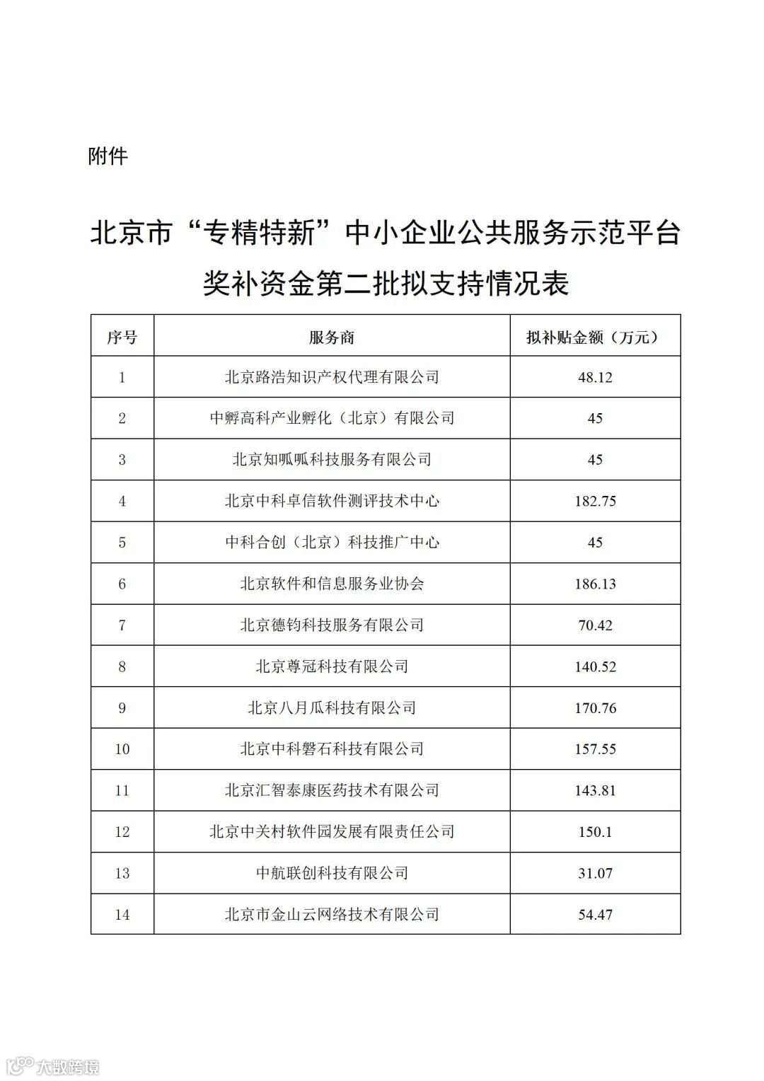 附件:北京市“专精特新”中小企业公共服务示范平台奖补资金第二批拟支持情况表