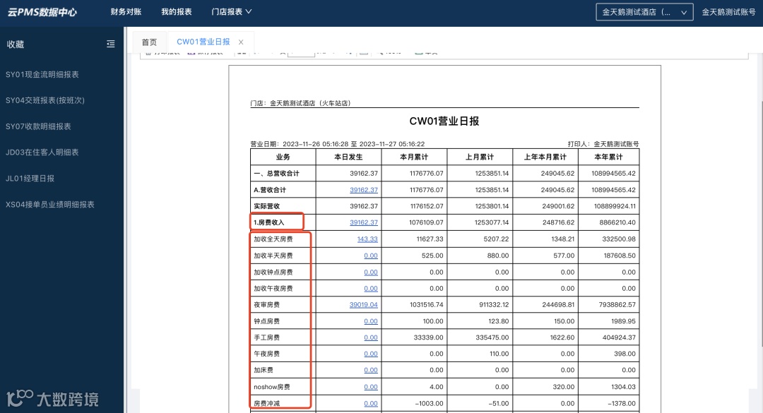 01、营业日报属于权责发生制的报表,统计的是酒店这个营业日内所有发生的账务,和房间是否结账没有直接的关系。