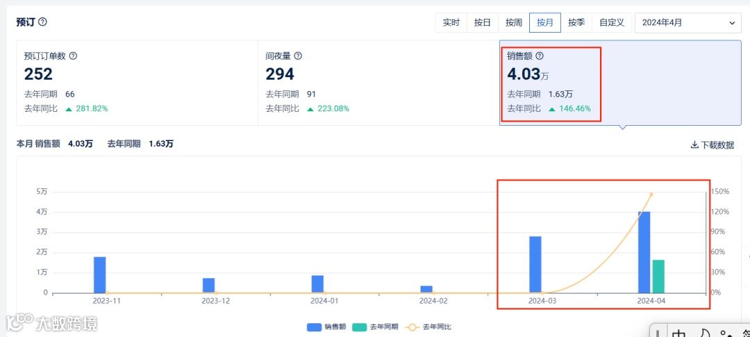 运营前:OTA平台订单量连续三个月都未超过40个,销售额不超过1W;三个月合计销售额不到2W; -
