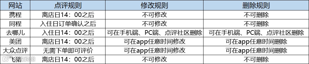 各平台点评规则